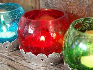These crackled glass tea candle holders from India will add some fun and colour into your room. Add a scented tea candle to make your room smell dreamy.