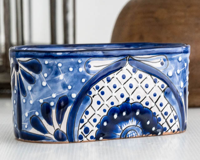 Beautiful handpainted talavera planters from Mexico. Each one is unique, so patterns will differ from the one pictured.