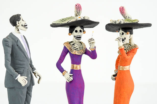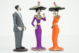 These unique and fun day of the dead figurines are handmade from clay in Mexico. They have a beautiful raw simplicity about them.