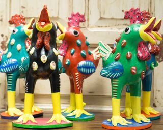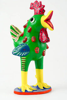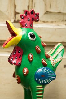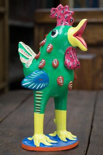 A fun Mexican rooster made by the Ortega family in Mexico. Each one has a slightly different colour combo, so may differ from the one pictured.