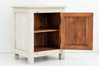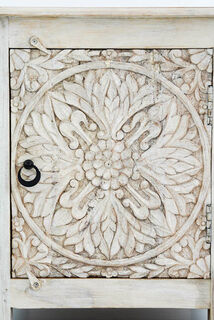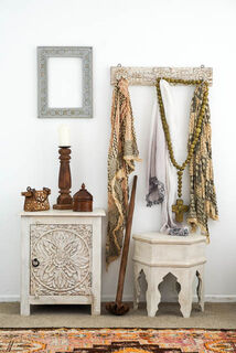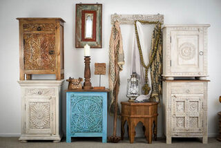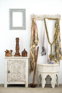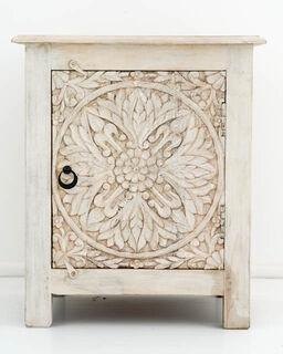A wonderful bohemian style bedside table with beautifully detailed hand carving work.