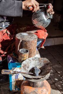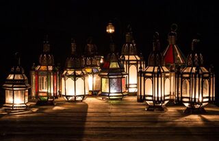 An oxidized tin lantern which can be used either as a hanging lantern or as a candle lamp. A very traditional style lantern handcrafted in the souks of Marrakech by skilled artisans.