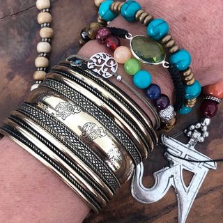 All our boho range of jewellery is made from a mix of brass, zinc, shell, wood, bone, stone, glass, onyx, quartz & cotton.
