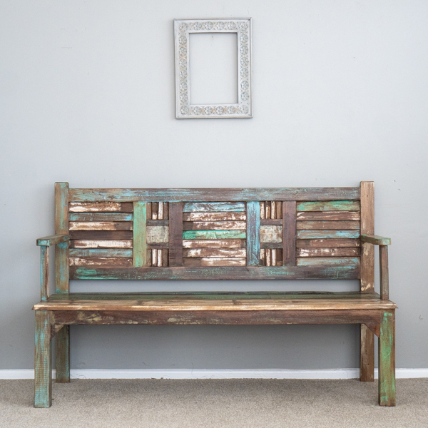 This wonderfully rustic Indian bench seat is handcrafted from reclaimed timber.