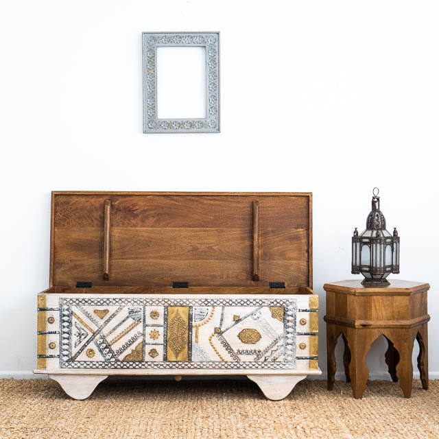 > Home > Buy Online > Colour > Neutrals > Brass Bohemian Blanket Box1160mm wide x 430mm deep x 460mm high.