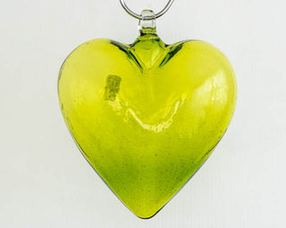Beautiful handblown glass hearts crafted by skilled artisans in Mexico and have a loop on the top. Hang them in a tree, in a window or against the wall.