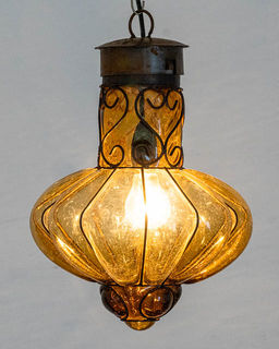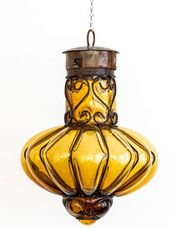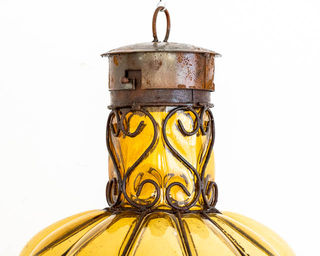 This awesome glass lantern has been blown into a wire frame. The wire may have some patches of oxidisation on it, but this just adds to its handcrafted charm. Hand blown in Mexico by skilled craftsmen. Great for that dreamy bohemian vibe, or even a retro style room. Creates a lovely ambient light.