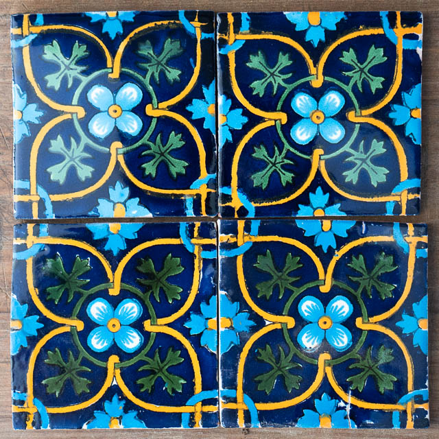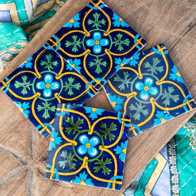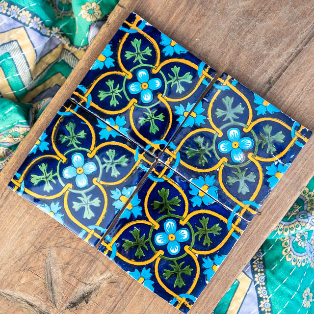 As these are wonderful hand cut and hand painted tiles, it is quite normal for there to be slight irregularities in the size, unevenness, flaws in the paint and some crackling in the glaze.