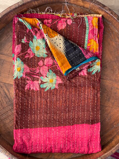 These vintage kantha quilts are a thin, double sided cotton quilt hand crafted in Rajasthan. They are made from old saris, scraps of left over textiles and each one is unique. Most of them will have small patches sewn over to patch small holes. They commonly have some loose or uneven stitching and old stains on the fabric. This is all part of the beauty of a handcrafted vintage kantha. Very awesome quilts!!