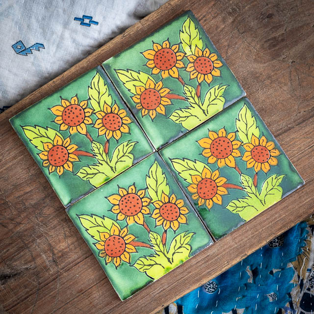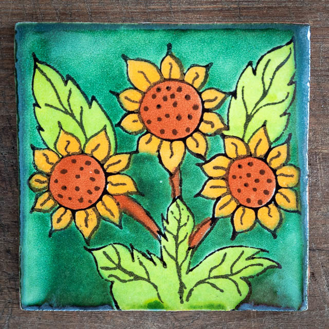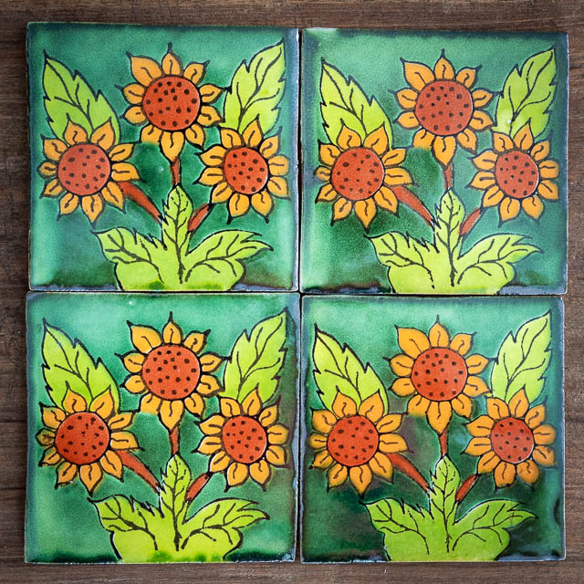 > Home > Buy Online > Mexican Tiles > Picture Tiles > Sunflower Tile GreenApprox 110mm x 110mm x 8mm thick