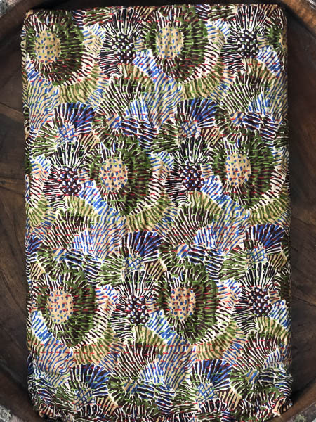 These stunning kanthas are a thin, double sided cotton quilt hand crafted in Rajasthan. Kantha quilts commonly have some loose or uneven stitching. This is all part of the beauty of a handcrafted product. Can be cold machine washed separately.