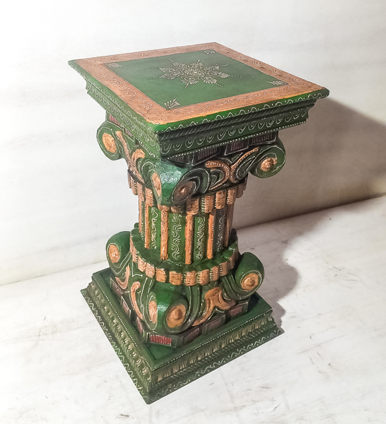Beautiful hand carved pillar works as a side table, accent stool, or sculptural decor stand. The detailed craftsmanship and natural wood texture bring coastal, bohemian, and rustic styling to living rooms, bedrooms, and entryways. Made from solid wood, it is very heavy, durable, and built to last. Ideal for buyers searching for handcrafted Indian furniture and unique timber side tables.