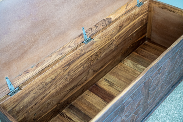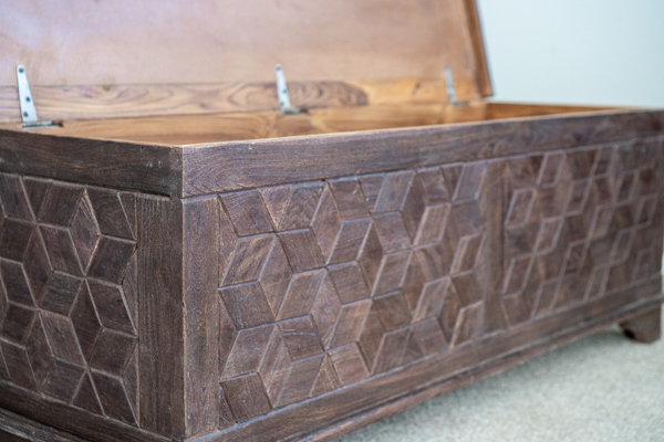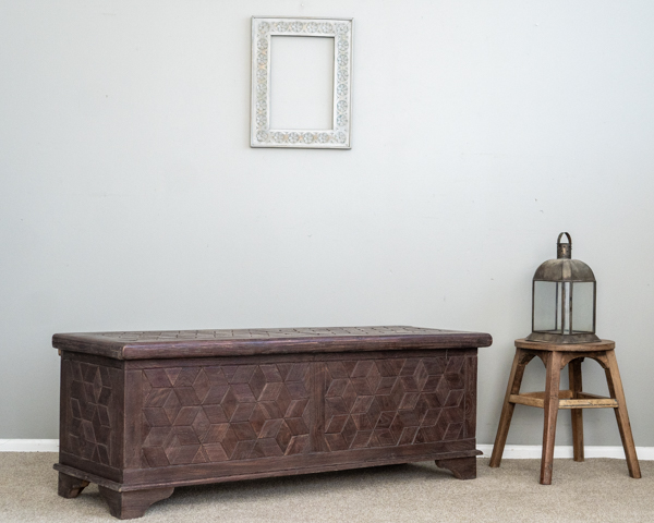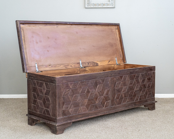 A gorgeous handcrafted blanket box with beautiful parquet timber detailing.
