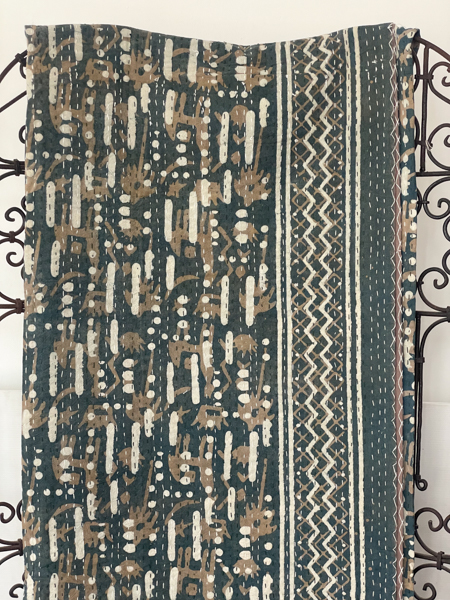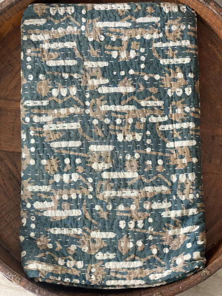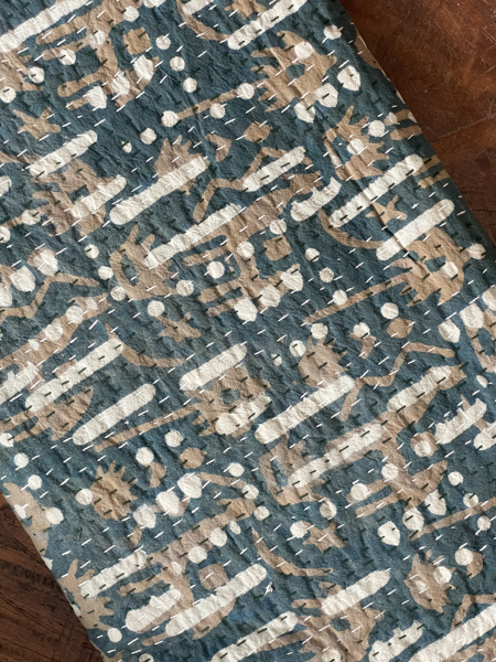 Dappled Block Print Kantha Quilt