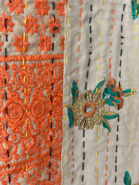 Kantha patchwork quilts commonly have some loose or uneven stitching. This is all part of the beauty of a handcrafted product. Very awesome quilts!!