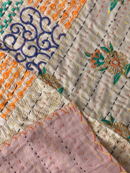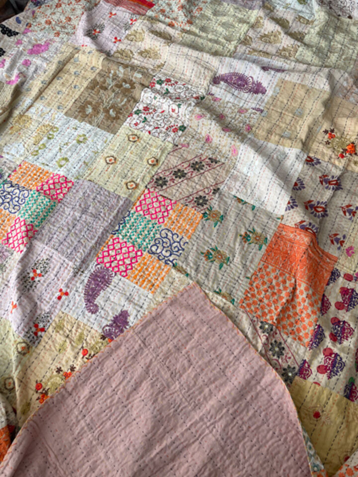 These stunning kanthas are a thin, double sided 100% cotton quilt handcrafted in India.