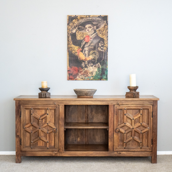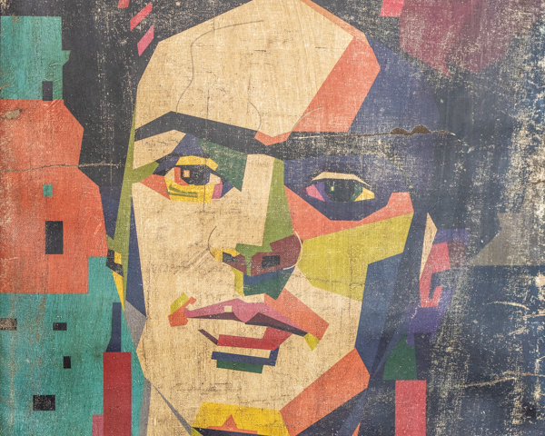A stretched screen printed canvas of Frida Kahlo on a timber backing. These are very rustic prints with crackling effect on the canvas.