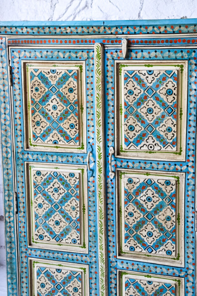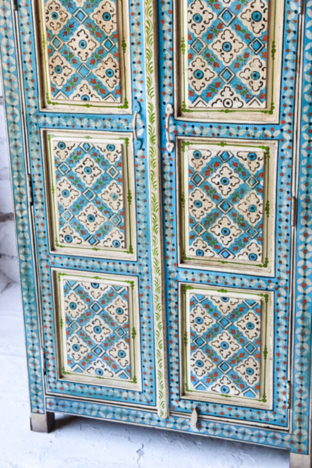 A fun super ethnic tallboy made from reclaimed timber and has been hand painted in a tradition Indian style♥️