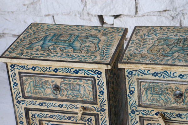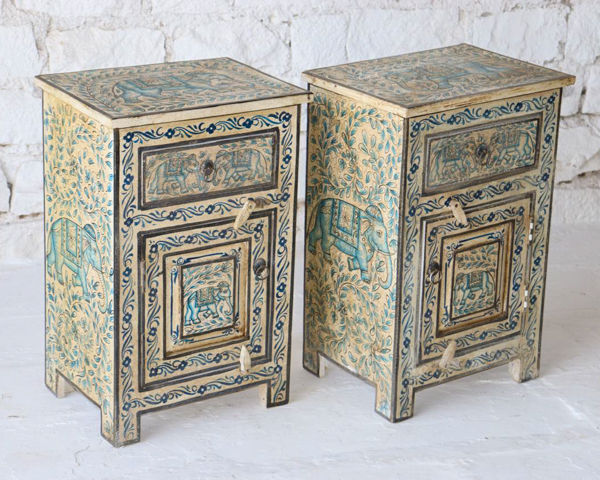 > Home > Buy Online > Style > Indian Style > Hand Painted Elephant Bedside Table PRE ORDER450mm wide x 350mm deep x 700mm high.