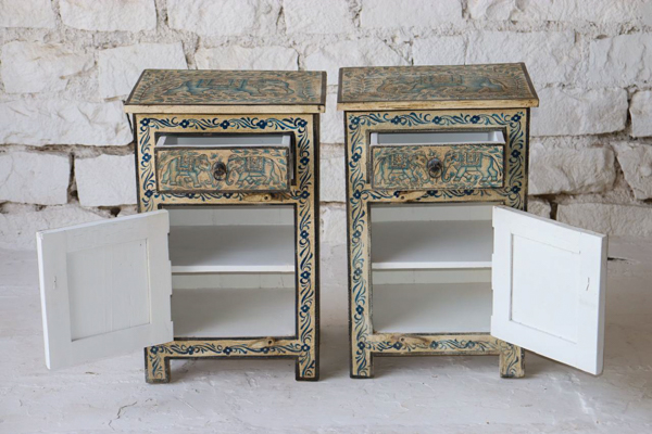 A fun super ethnic 1 door & 1 drawer bedside table made from reclaimed timber and has been hand painted in a tradition Indian style♥️