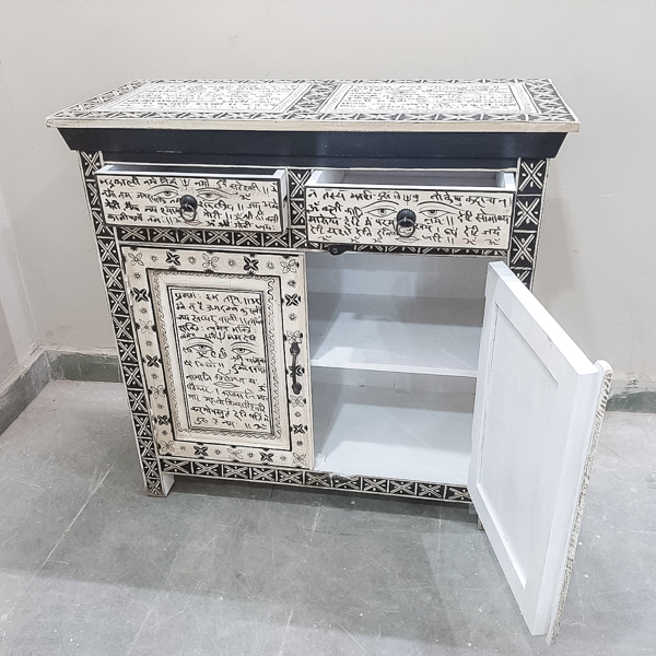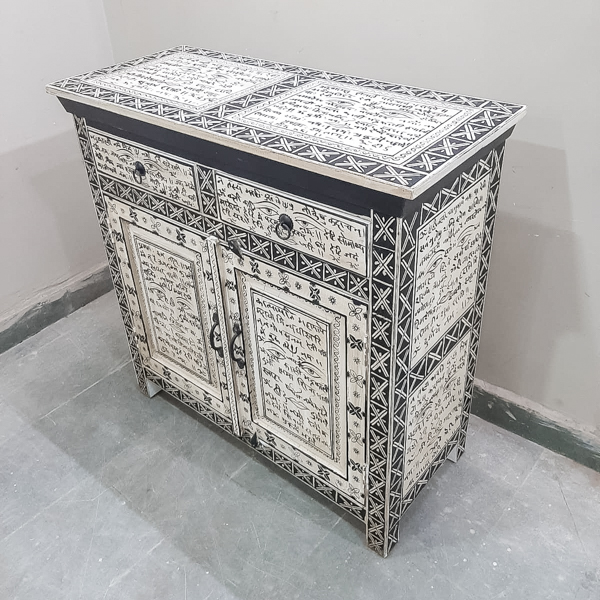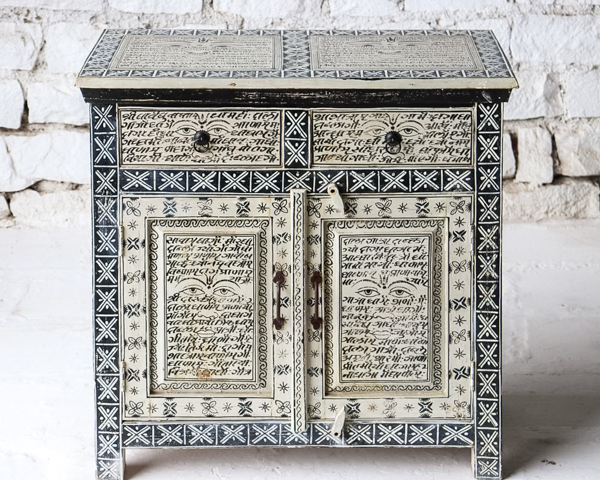 A fun super ethnic 2 door & 2 drawer sideboard made from reclaimed timber and has been hand painted in a tradition Indian style♥️