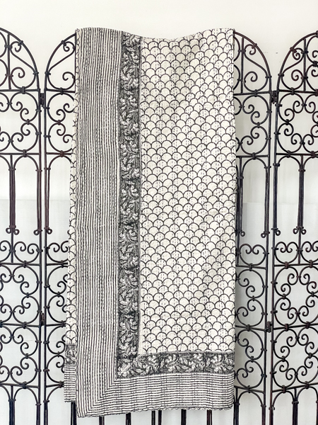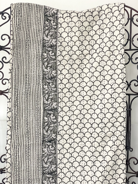 > Home > Buy Online > Textiles > Kantha Quilts & Throws > Indali Block Print Kantha Quilt BlackApprox 2300mm x 2750mm.