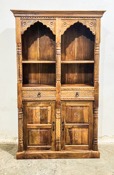 An utterly gorgeous bookshelf or display cabinet with beautifully detailed hand carving work. An absolute work of art.