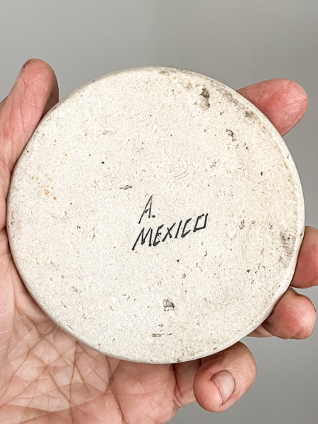A beautiful whimsical Mexican Tonala stoneware tile, hand painted and handcrafted in Mexico with distinctive raised relief detailing. Measuring 85mm x 85mm x 10mm thick, this decorative ceramic tile adds authentic Mexican style to kitchen backsplashes, bathrooms, fireplace surrounds, and feature walls. The charming design brings colour and artisan character to any space, and it also works perfectly as a stylish coaster. Ideal for collectors and interior designers seeking handmade Mexican tiles, Talavera-style decor, and unique artisan home accents.