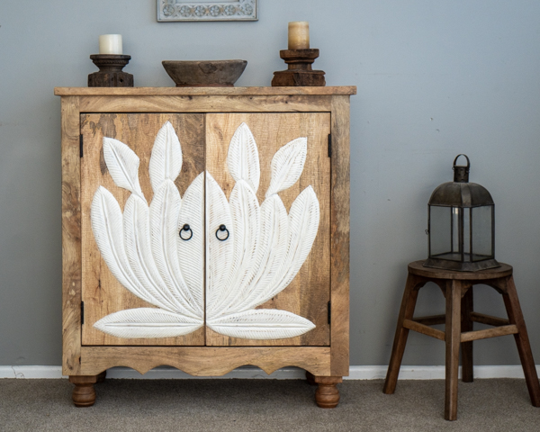 > Home > Buy Online > Furniture > Lotus Flower SideboardApprox 900mm wide x 1000mm high x 430mm deep.