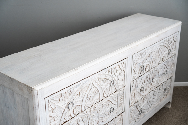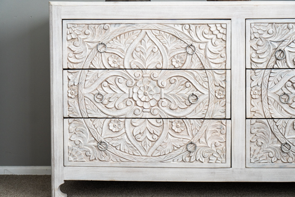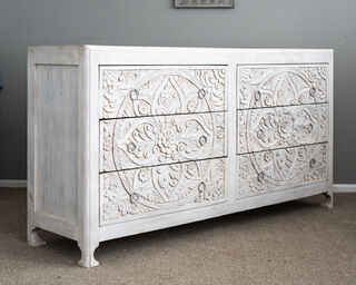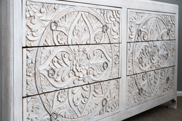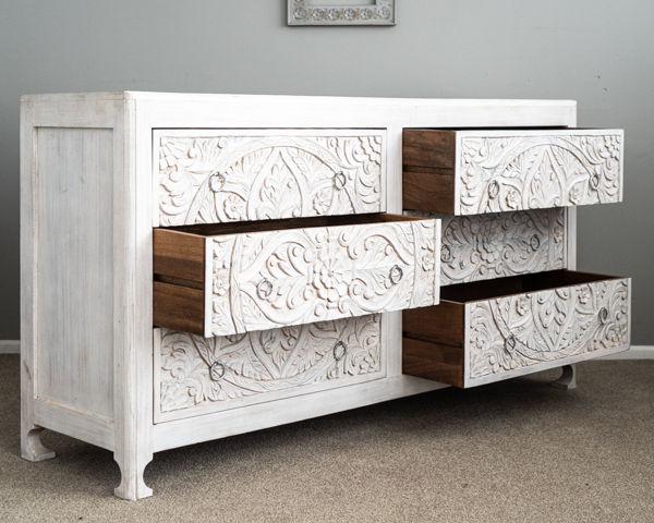 An utterly gorgeous set of 6 drawers with beautifully detailed hand carving work. An absolute work of art.