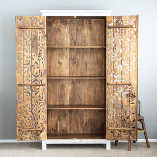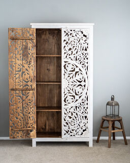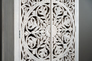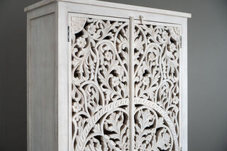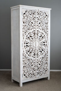 > Home > Buy Online > Furniture > Mandala Hand Carved Tallboy WhiteApprox 970mm wide x 1900mm high x 430mm deep.