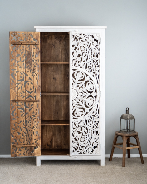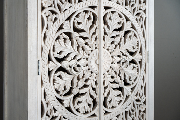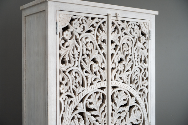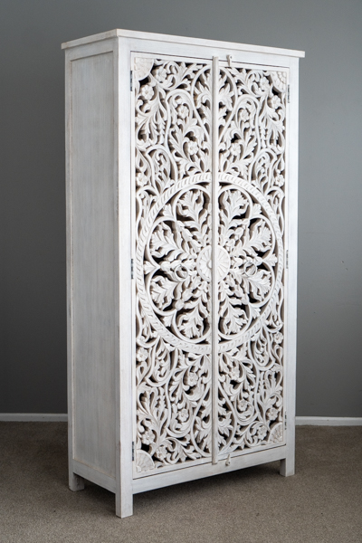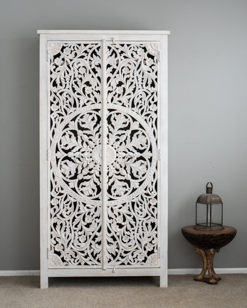 > Home > Buy Online > Furniture > Mandala Hand Carved Tallboy White PRE ORDER970mm wide x 1900mm high x 430mm deep.
