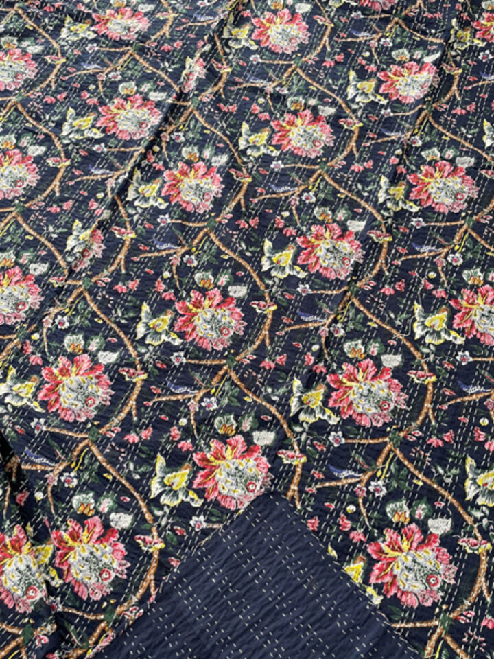 > Home > Buy Online > Textiles > Kantha Quilts & Throws > Navy Blue Kantha QuiltApprox 2300mm x 2750mm.
