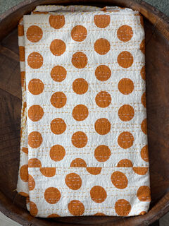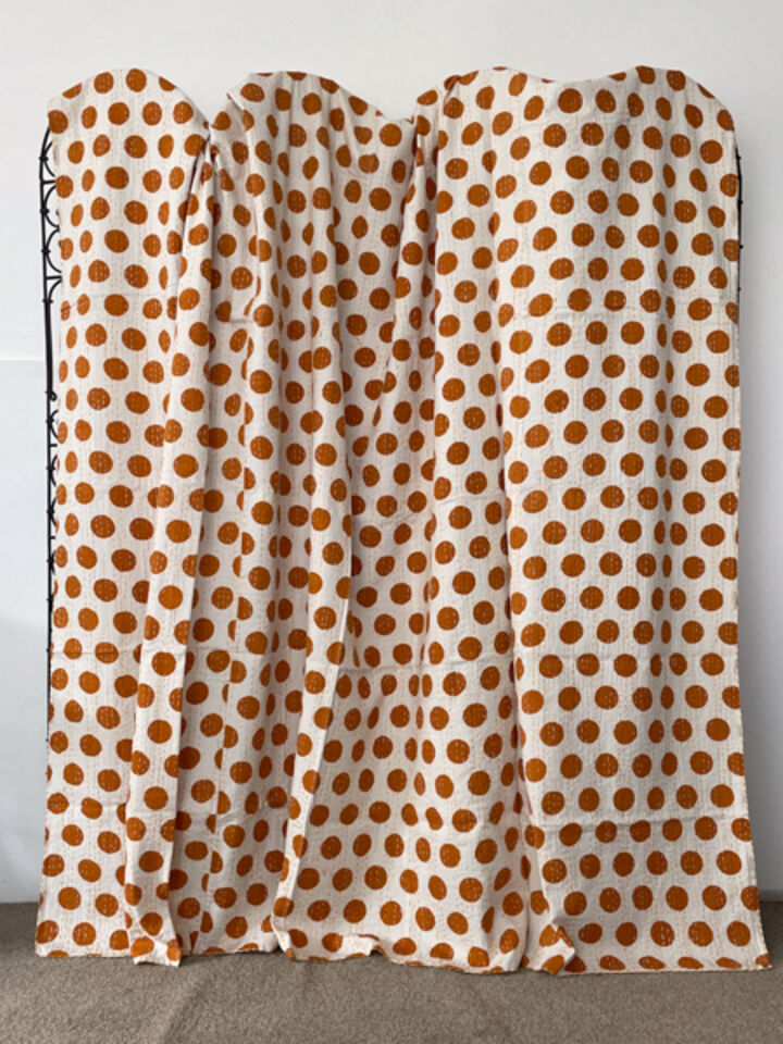 Orange Polka Dot Kantha Quilt