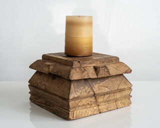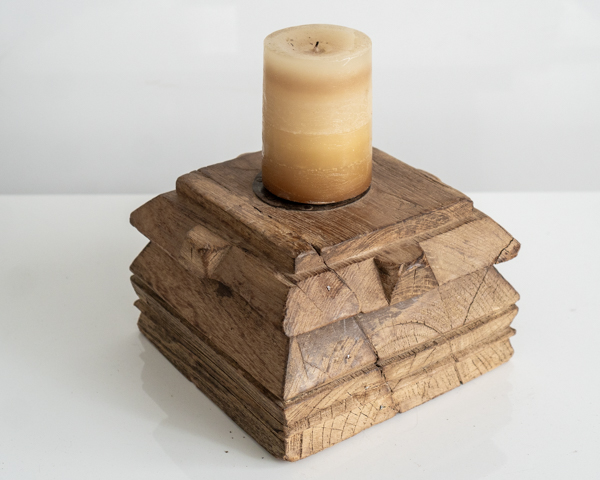 Enhance your home decor with this exquisite rustic pillar candle stand, meticulously handcrafted from reclaimed teak wood and imported directly from India. This unique candle stand is the perfect size to hold your favorite pillar candles, providing both stability and style. Each piece showcases beautiful hand carved detailing, giving it a distinctive character and charm that reflects expert Indian craftsmanship.