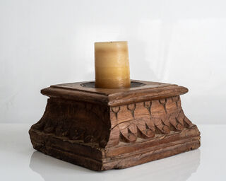 Enhance your home decor with this exquisite rustic pillar candle stand, meticulously handcrafted from reclaimed teak wood and imported directly from India. This unique candle stand is the perfect size to hold your favorite pillar candles, providing both stability and style. Each piece showcases beautiful hand carved detailing, giving it a distinctive character and charm that reflects expert Indian craftsmanship.