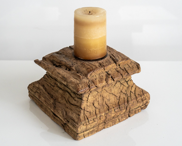 Enhance your home decor with this exquisite rustic pillar candle stand, meticulously handcrafted from reclaimed teak wood and imported directly from India. This unique candle stand is the perfect size to hold your favorite pillar candles, providing both stability and style. Each piece showcases beautiful hand carved detailing, giving it a distinctive character and charm that reflects expert Indian craftsmanship.