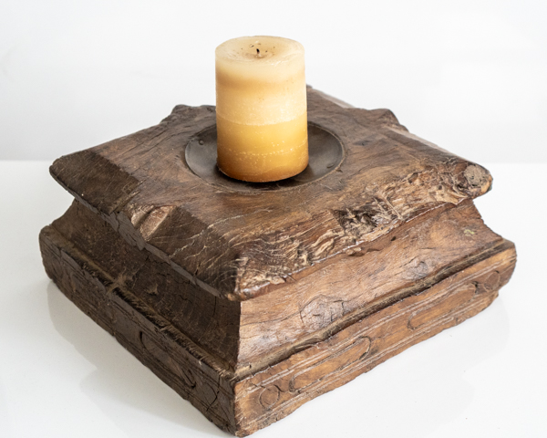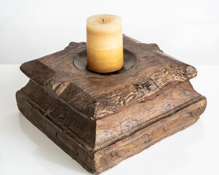 Enhance your home decor with this exquisite rustic pillar candle stand, meticulously handcrafted from reclaimed teak wood and imported directly from India. This unique candle stand is the perfect size to hold your favorite pillar candles, providing both stability and style. Each piece showcases beautiful hand carved detailing, giving it a distinctive character and charm that reflects expert Indian craftsmanship.