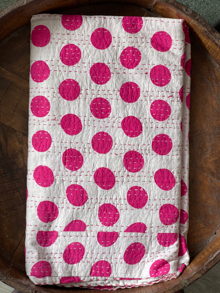 > Home > Buy Online > Textiles > Kantha Quilts & Throws > Pink Polka Dot Kantha QuiltApprox 2300mm x 2750mm.