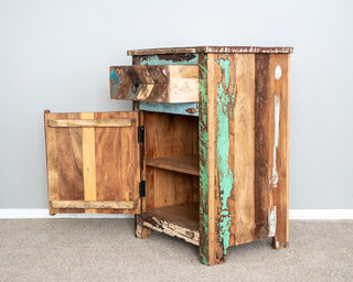 A beautiful unique rustic side table made from reclaimed timber and mango wood. Great to use in the living room to pop your drink on or as a bedside table in your room. Each one may look a little different from the one pictured.