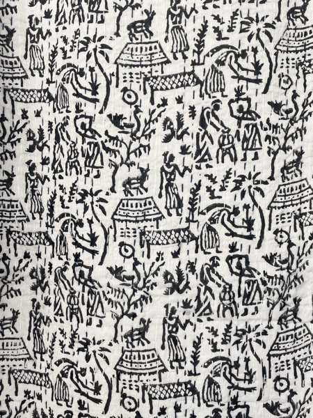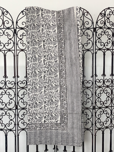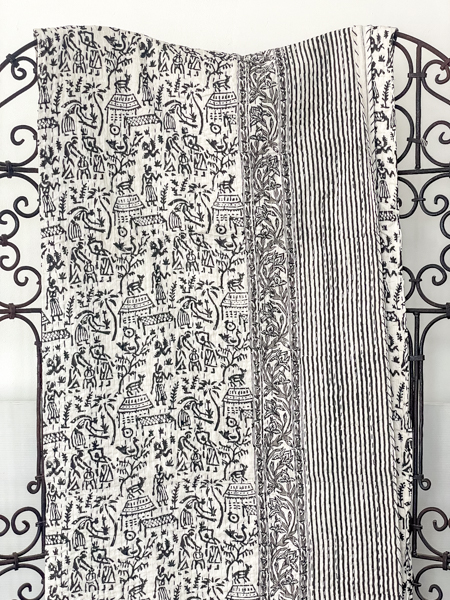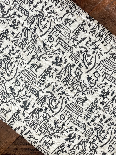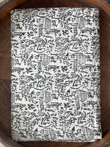 Village Block Print Kantha Quilt Black