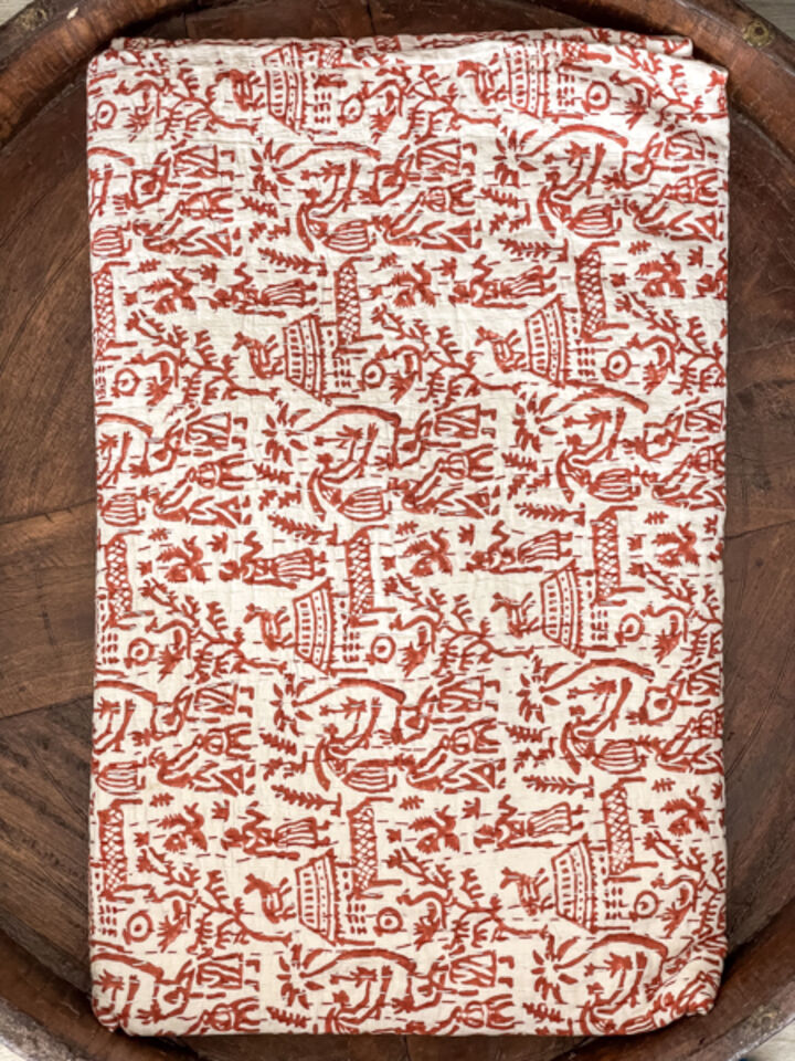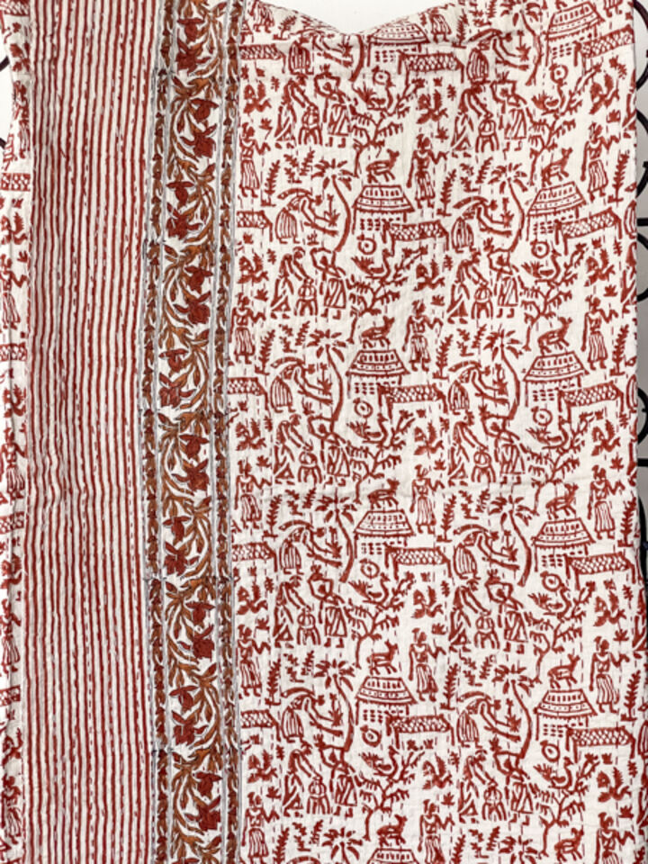 Village Block Print Kantha Quilt Orange