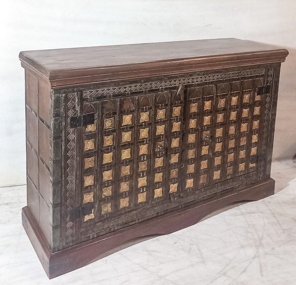 Awesome handcrafted old storage pittarah made from teak with tin & brass detailing on 2 doors. Loads of character!!