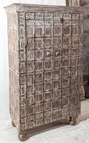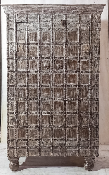 This is a one-of-a-kind rustic style antique storage cabinet handcrafted in India from solid teak. This beauty features two doors with metal detailing, delivering authentic vintage character and artisan craftsmanship. Approximately 60–80 years old, it’s an ideal rustic teak cupboard for hallway, bedroom, or living room storage. Perfect for lovers of antique Indian furniture, reclaimed timber style, and unique handcrafted statement pieces for the home.