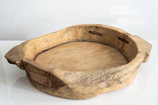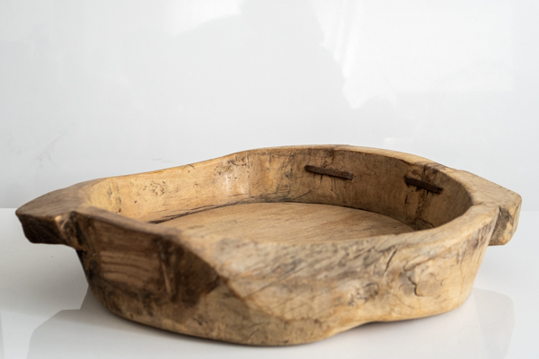 > Home > Buy Online > Decor > Wooden Parat Bowl Large 3Discover the charm and practicality of the Wooden Parat Bowl Large, a stunning artisan piece measuring approximately 450mm across and 70mm deep. Traditionally handcrafted in India, these wonderful old wooden bowls were once used for kneading dough to make chapati, roti, and other delicious flatbreads. Today, their rustic beauty and generous size make them perfect for modern living as a unique fruit bowl or a striking centerpiece for your dining room table or sideboard.
