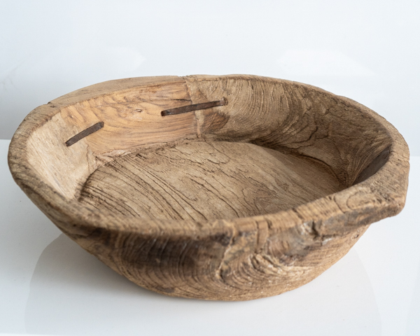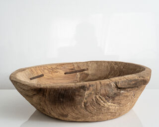 > Home > Buy Online > Decor > Wooden Parat Bowl Large 9Discover the charm and practicality of the Wooden Parat Bowl Large, a stunning artisan piece measuring approximately 450mm across and 70mm deep. Traditionally handcrafted in India, these wonderful old wooden bowls were once used for kneading dough to make chapati, roti, and other delicious flatbreads. Today, their rustic beauty and generous size make them perfect for modern living as a unique fruit bowl or a striking centerpiece for your dining room table or sideboard.