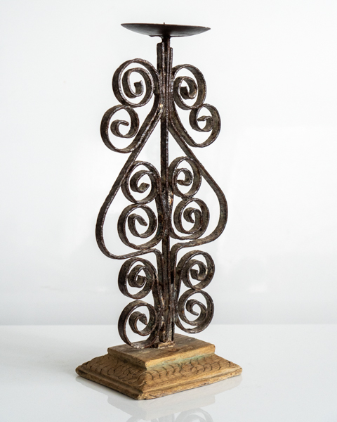 Wrought Iron Candle Stand Curly Brown